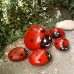 В последнее время, стало очень модно украшать цветники и газоны натуральными камнями. Но если пойти дальше по этому пути, то можно ещё и раскрашивать камни, не только в разные цвета, но и превращать их, при помощи краски в различных насекомых, плоды и фрукты.