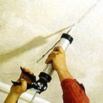 Трещины заделывают гипсовым раствором, или специально подготовленной пастой из мела и гипса, или специальной синтетической замазкой для трещин на потолке промышленного производства. Обычно такие средства долго сохраняют эластичность и обеспечивают лучшую защиту от воздействия влаги, чем паста из мела и гипса. Для того чтобы замазка прочнее соединилась с плитой, трещину смачивают водой, замазывают, хорошо сушат и зачищают.